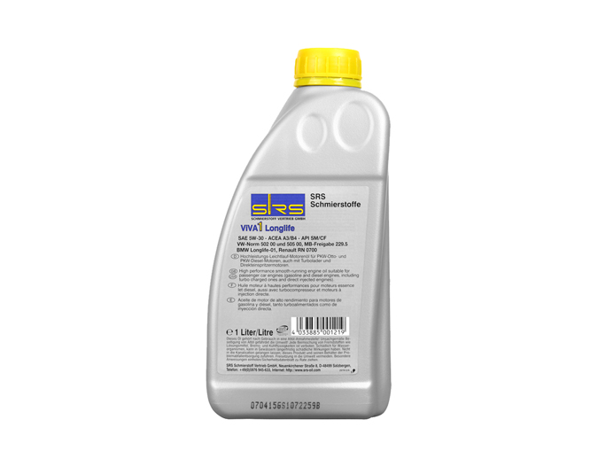 SRS ViVA 1 Longlife是一種高性能低摩擦汽車發(fā)動(dòng)機(jī)油,其黏度等級(jí)是SAE 5W-30?;A(chǔ)油通過(guò)合成技術(shù)和創(chuàng)新的添加劑的混合來(lái)滿足現(xiàn)代要求。良好的冷啟動(dòng)是潤(rùn)滑油在冷運(yùn)行中的最優(yōu)保障。