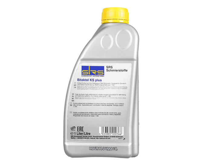 SRS Bitaktol KS plus是一種全合成高性能自混合二沖程原裝進(jìn)口機(jī)油。 能高效清潔,防腐,環(huán)粘,防止活塞卡死。目前是FD最高級(jí)別的園林機(jī)械用油